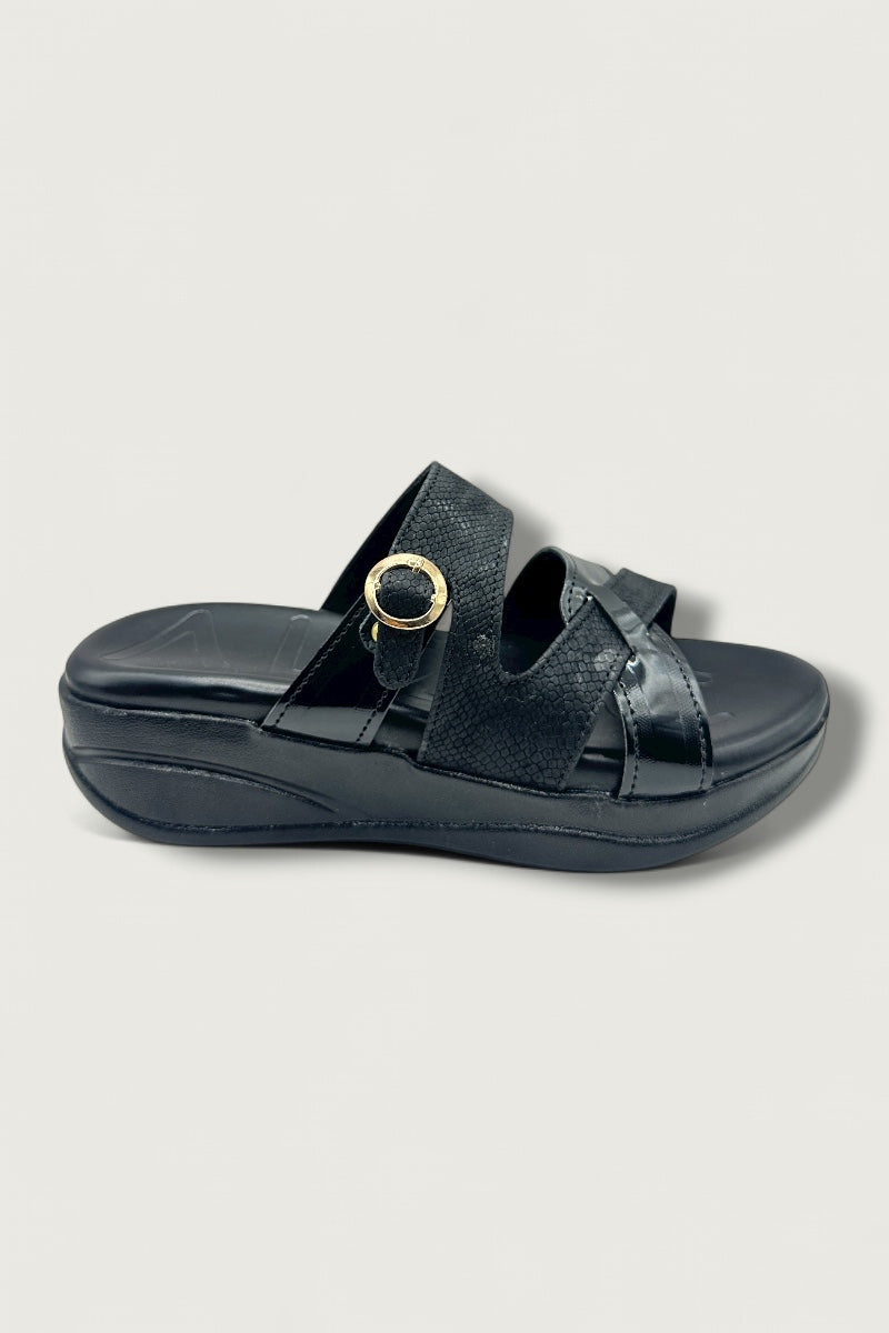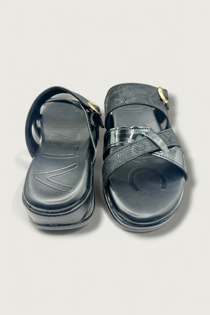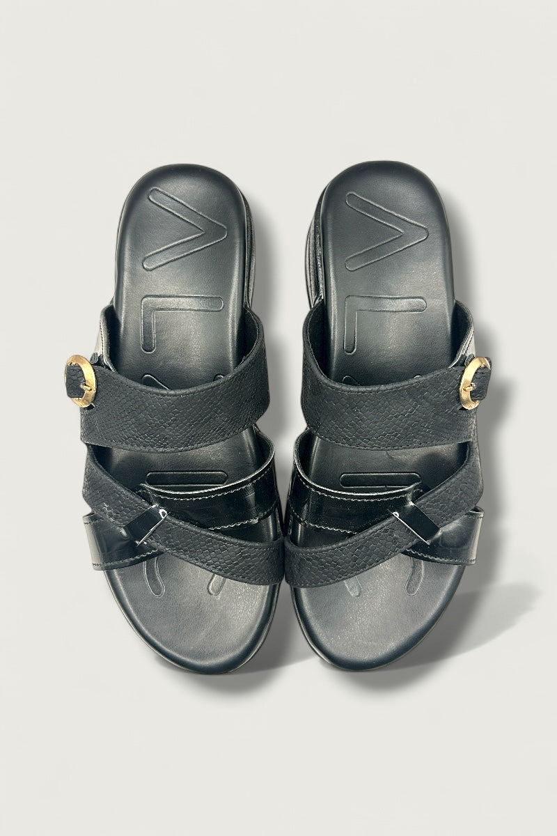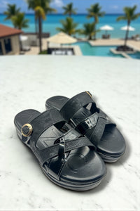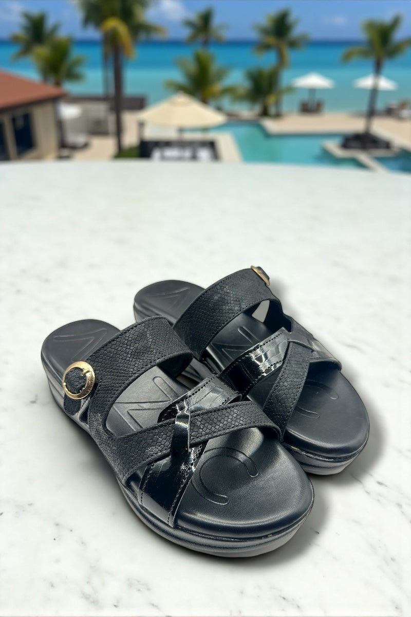 Effortlessly elegant and endlessly versatile, the Noir Grace Criss-Cross  are designed to be your all-day companion. With a sophisticated black-on-black design and luxurious comfort, these sandals strike the perfect balance between minimal and chic.