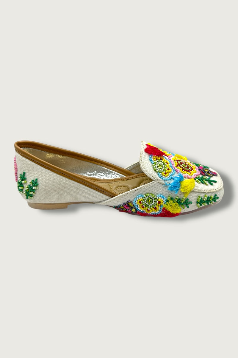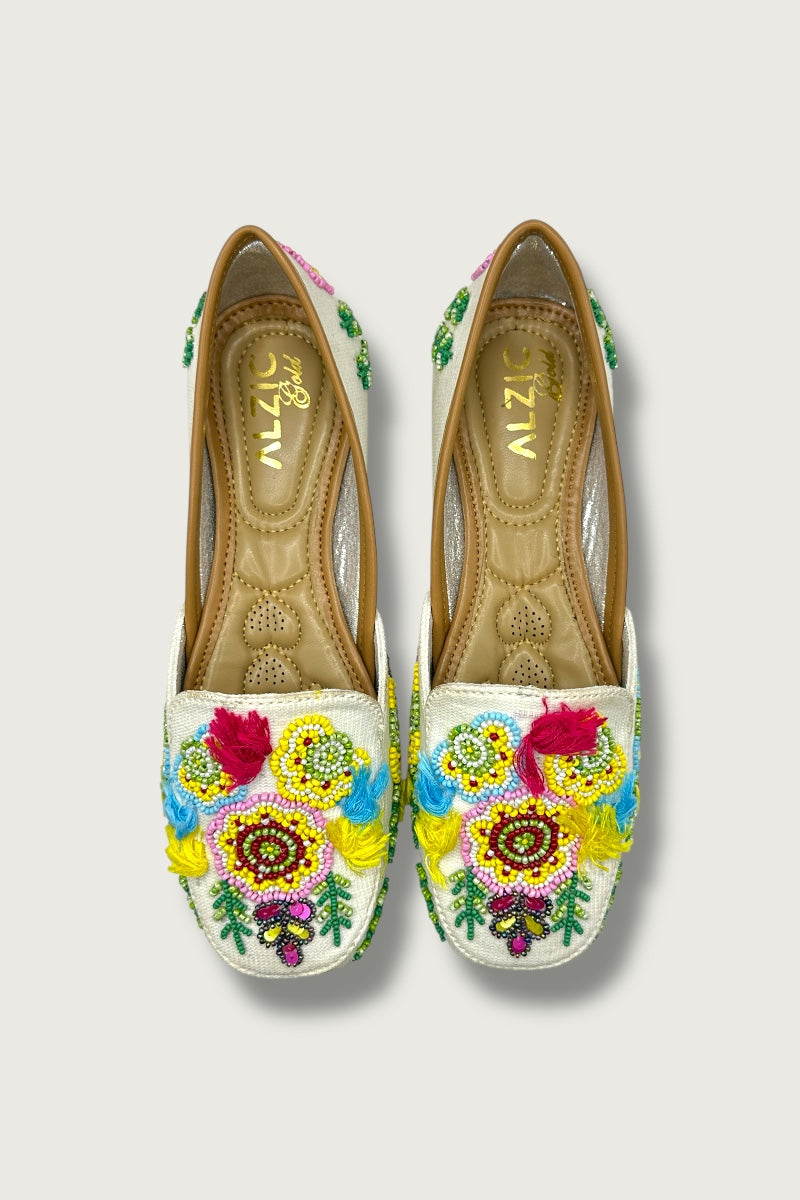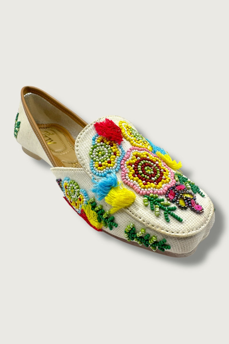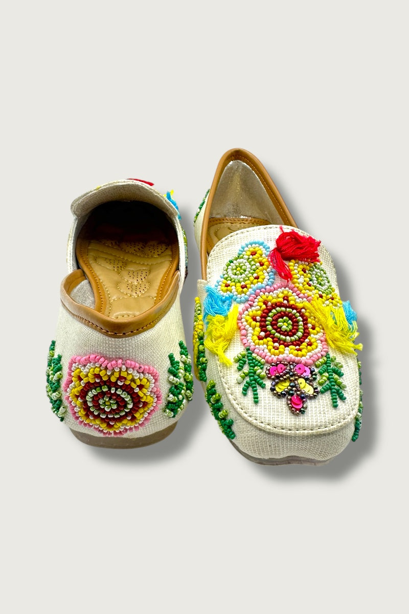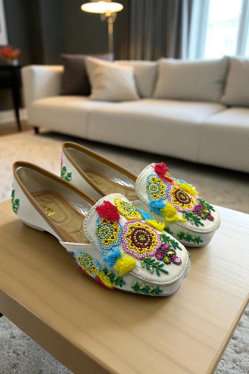 Step into elegance with these beautifully hand-embroidered loafers, adorned with colorful beads, tassels, and threadwork that bring a vibrant ethnic charm to your every step.
