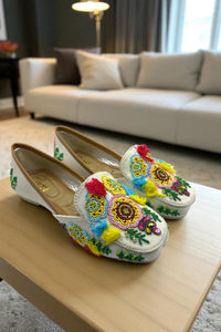 Perfect for adding a pop of color to both casual and festive outfits. These loafers are not just footwear but wearable art — blending tradition with modern comfort.