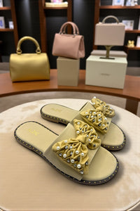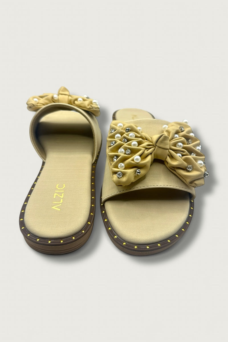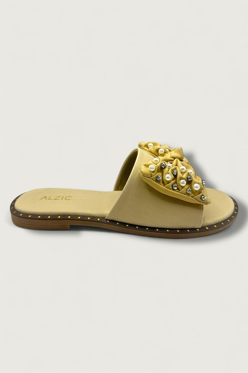 Step into effortless elegance with these chic, pearl-embellished slide slippers from ALZIC. Designed to blend comfort with luxury, these slippers feature a sophisticated bow and jewel accents, perfect for any casual or semi-formal occasion. Whether you're lounging at home or stepping out for a quick errand, these slippers will elevate your look.