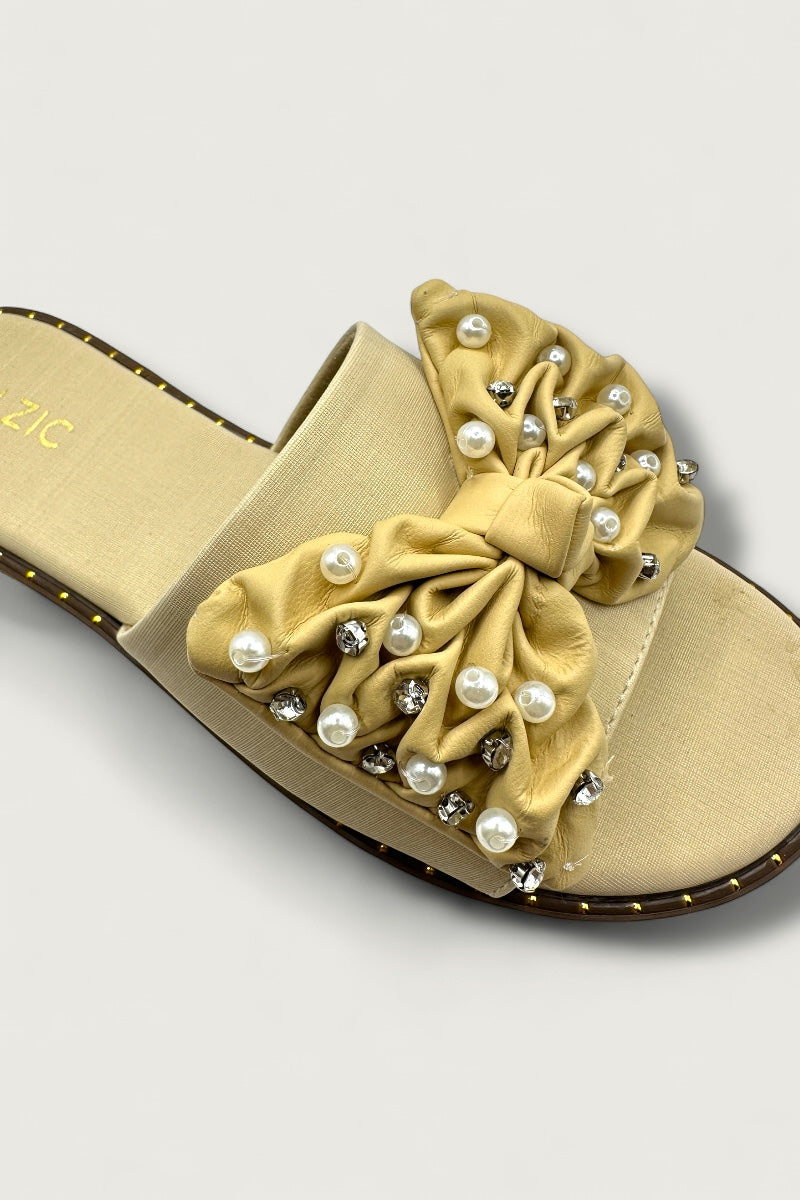 Elegant Pearl-Embellished Slide Slippers - Beige / 36
