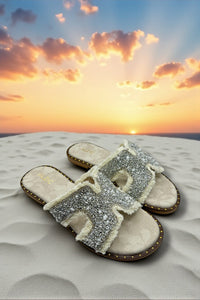 Description: A bold mix of raw denim texture and intricate black crystal embellishments, designed to make every step sparkle with sophistication.