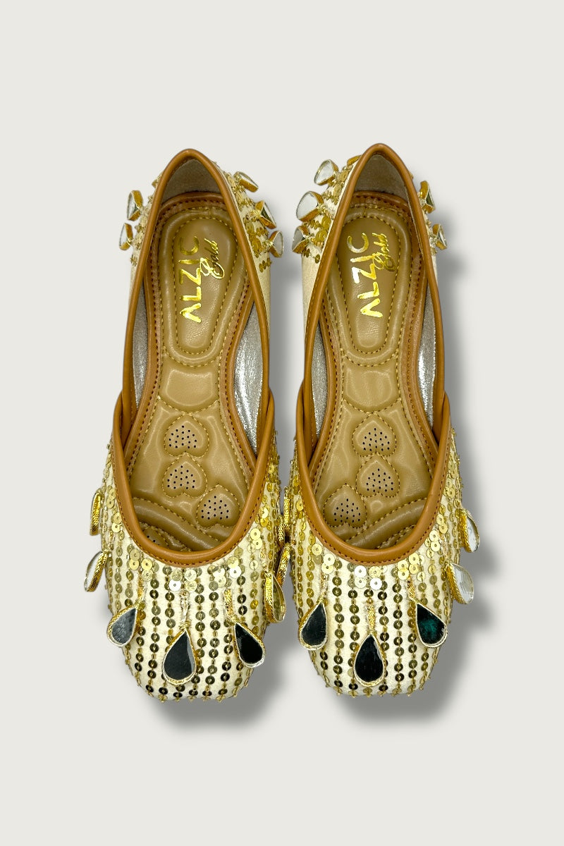 Radiate unmatched elegance with our Stellar Gleam Juttis, exquisitely handcrafted to bring a touch of celestial charm to your festive and occasion wear. Adorned with mirror accents and premium sequins, these juttis are the perfect blend of luxury, tradition, and style.